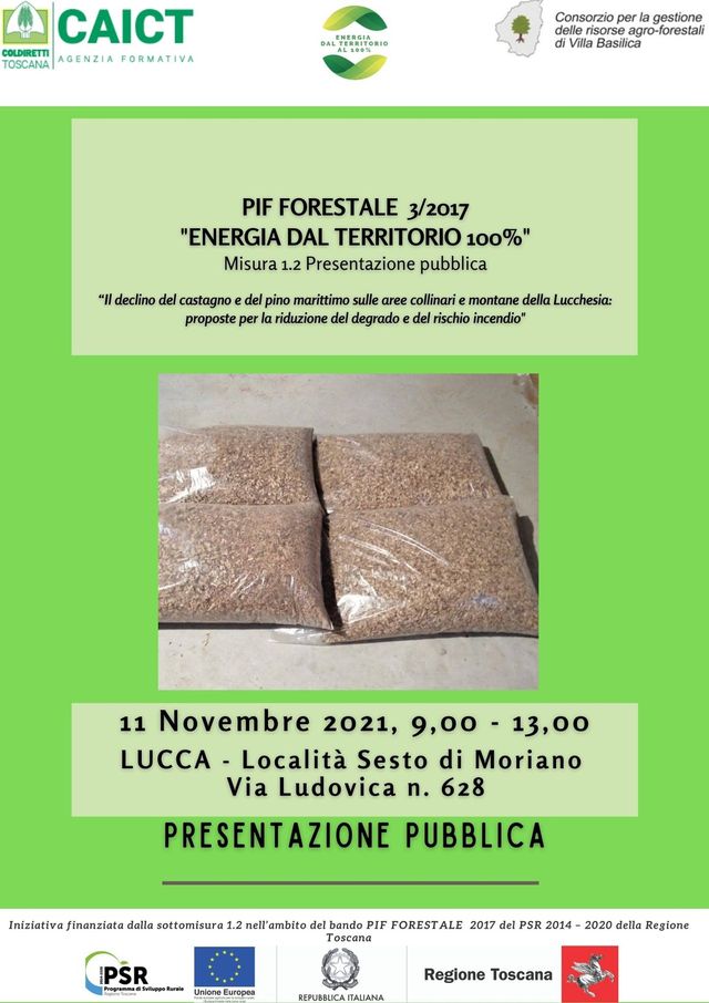 Iniziativa finanziata dalla sottomisura 1.2 nell’ambito del bando PIF FORESTALE 2017 del Programma di Sviluppo Rurale 2014 – 2020 della Regione Toscana (fondi FEASR)